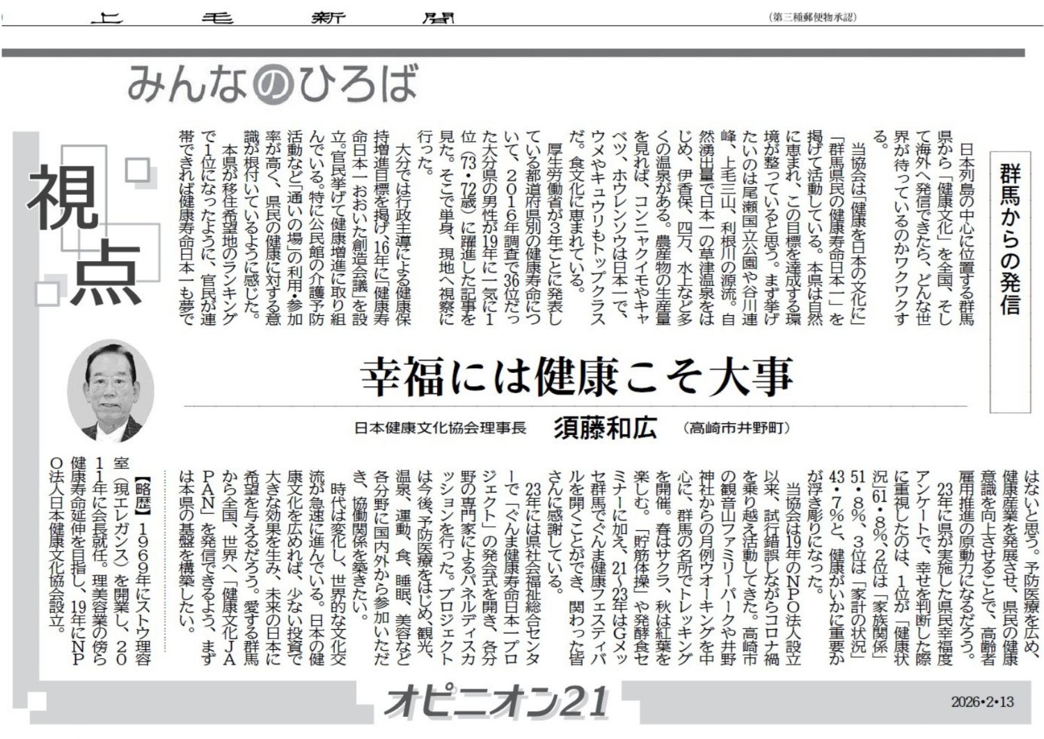 ■ 上毛新聞2026年2月13日付